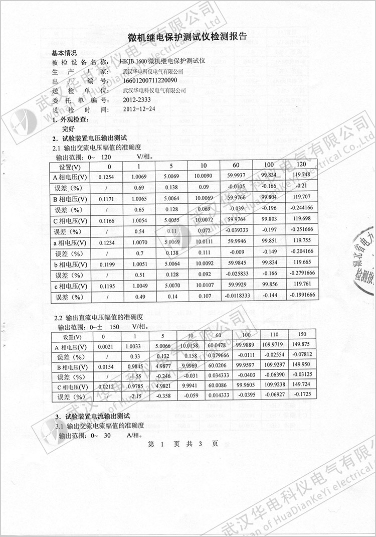 HKDZ-600A電能質(zhì)量監(jiān)測裝置檢驗報告