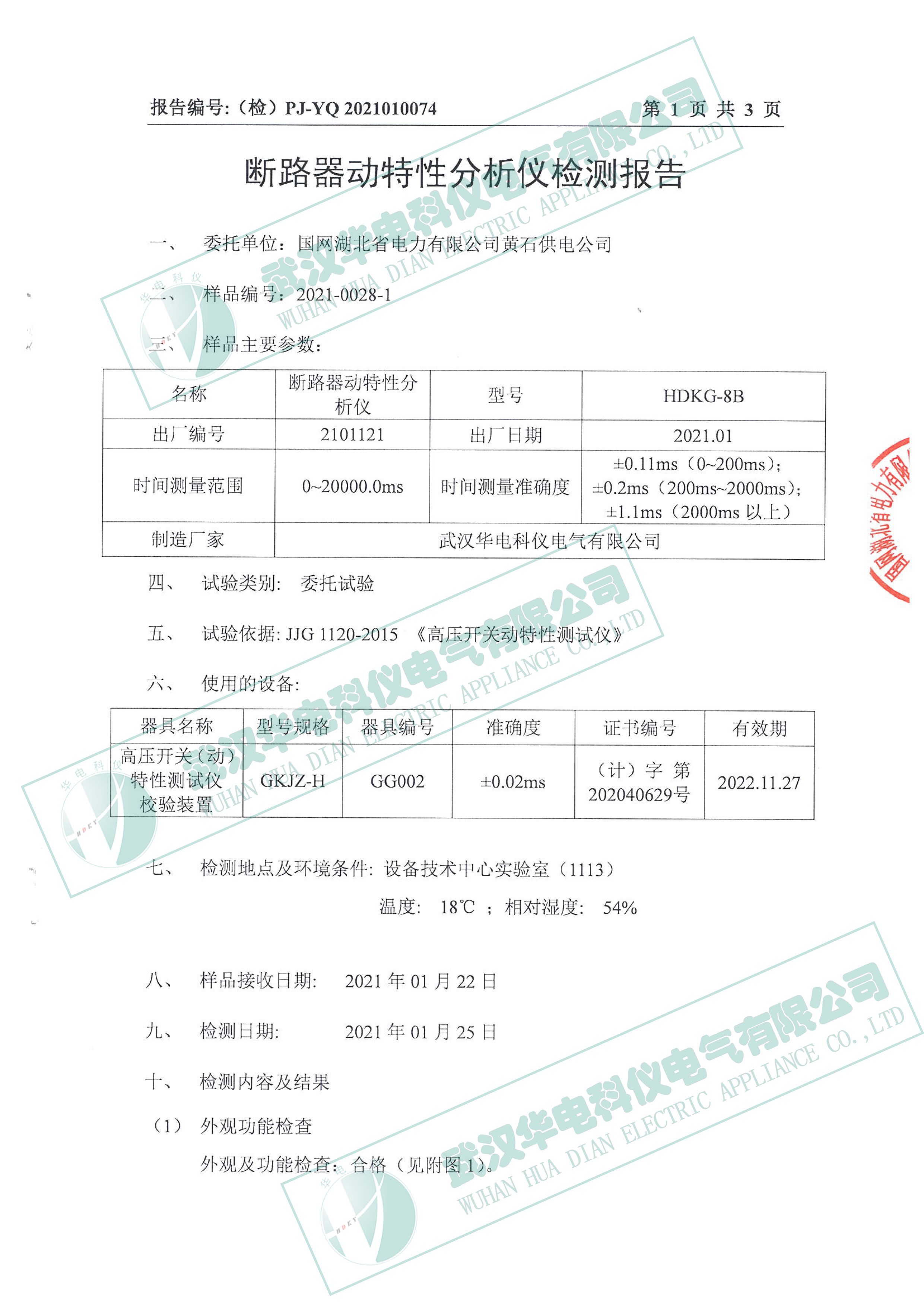 HDKG-8B斷路器特性分析儀檢定報告