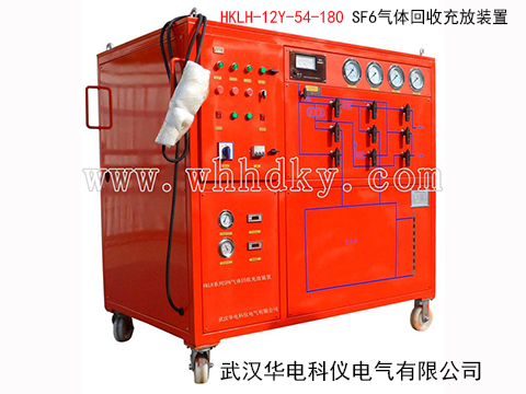 HKLH-12Y-54-180型SF6氣體回收裝置具有回收、充放、凈化、抽真空、貯存、灌瓶等綜合性功能,系統(tǒng)比較完全。各功能的串聯(lián)或切換主要通過操作集中于面板一側(cè)的電控箱和球閥來完成。