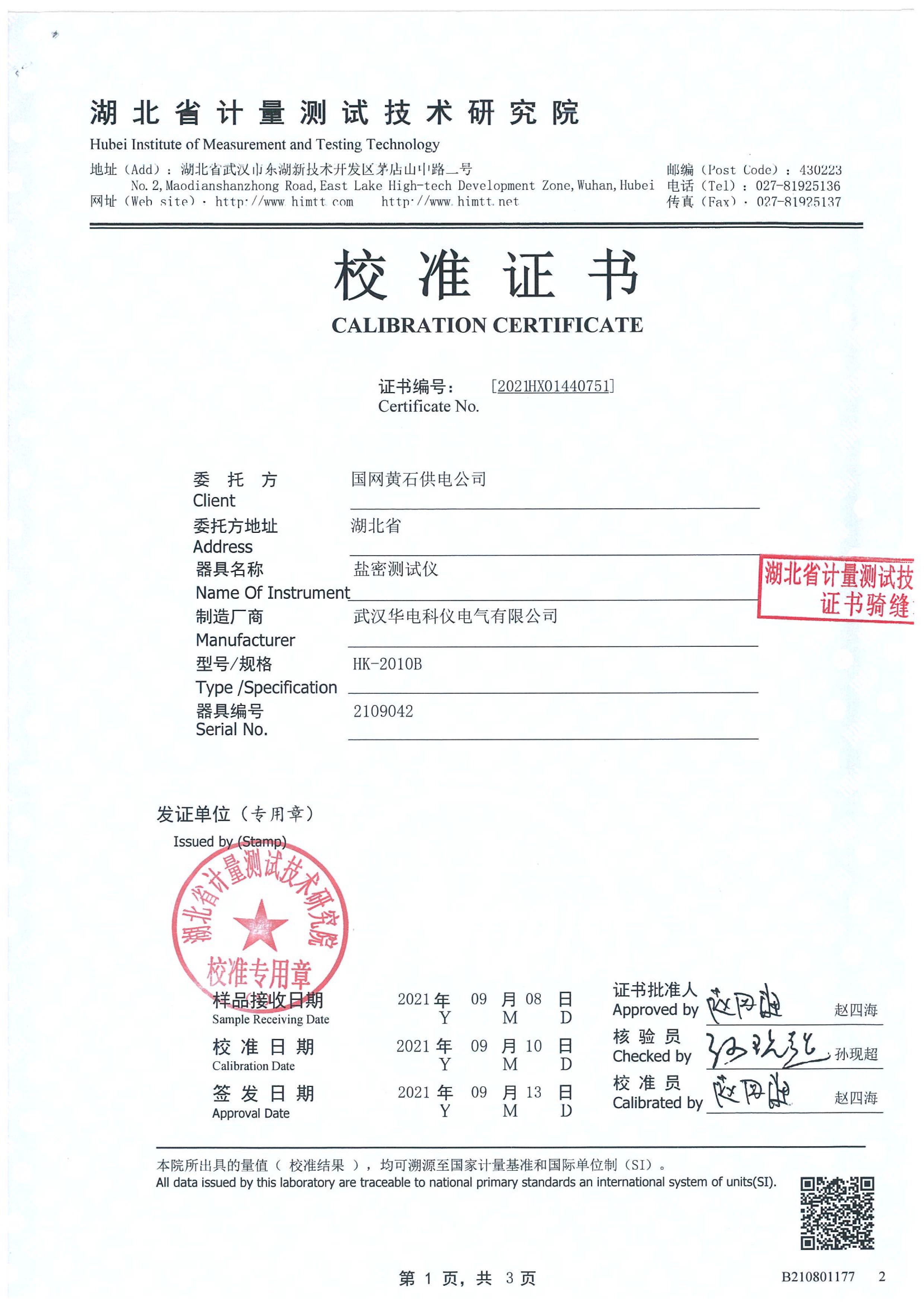 設(shè)備名稱(chēng):鹽密測(cè)試儀型號(hào):HK-2010B數(shù)量:1臺(tái)/套生產(chǎn)廠家:武漢華電科儀電氣有限公司