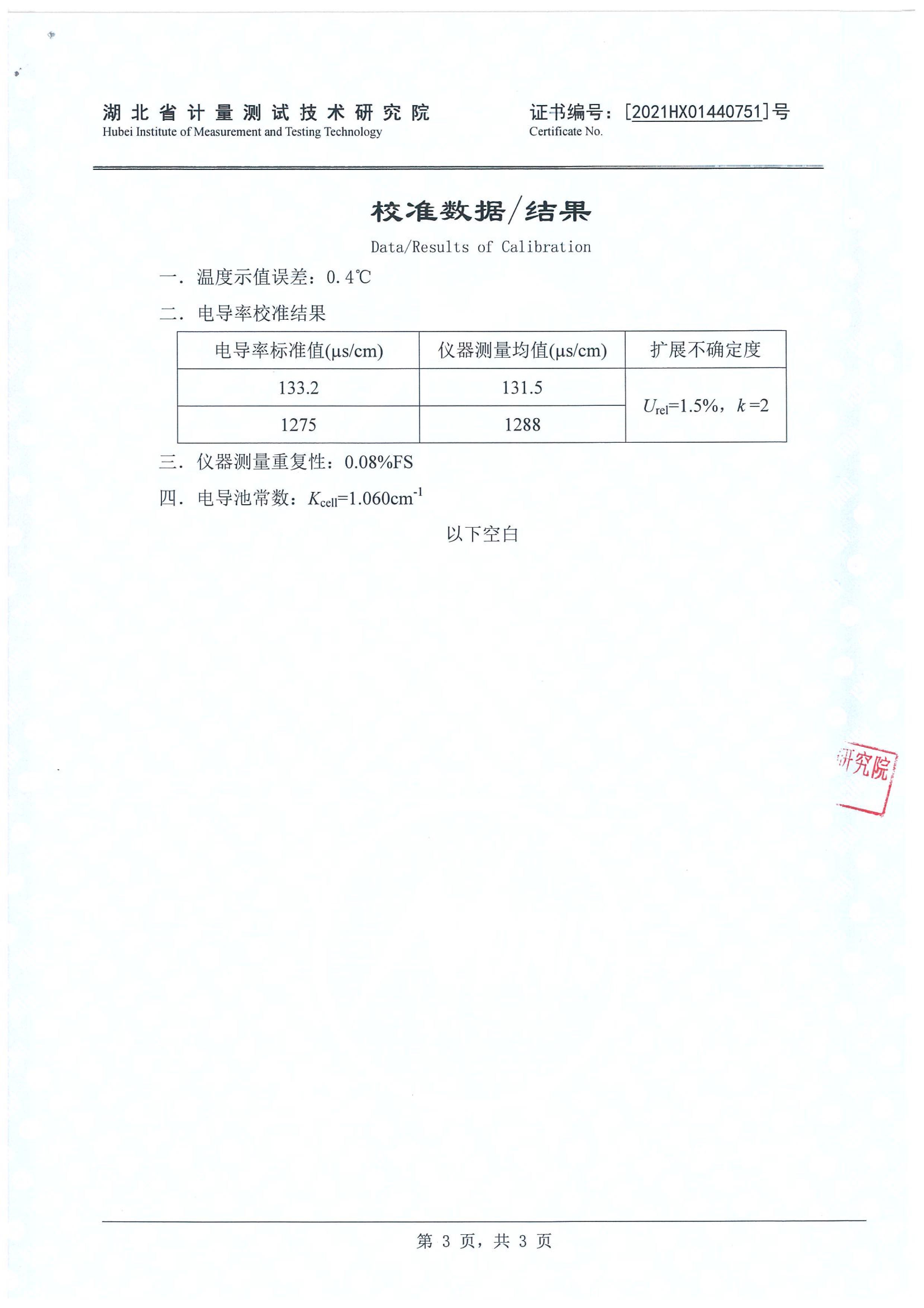 電導(dǎo)率:分辨率為量程的1/1000,滿(mǎn)量程精度優(yōu)于±0.5%