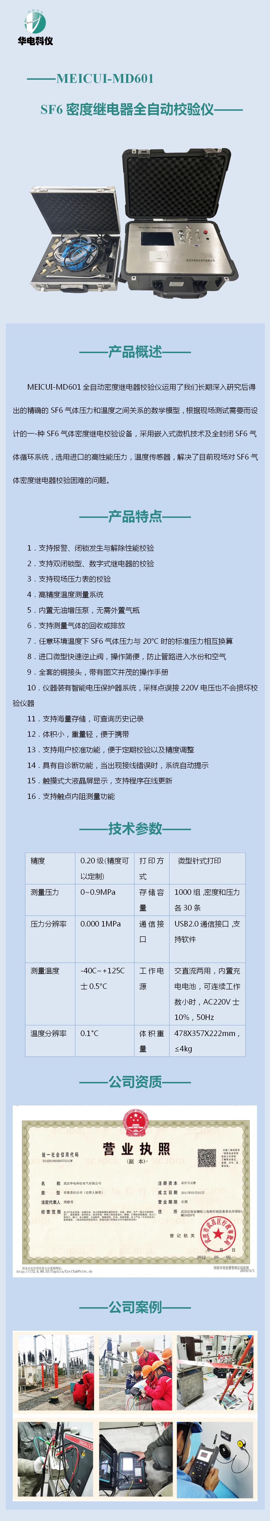 設(shè)備名稱:全自動密度繼電器校驗儀 型 號:MEICUI-MD601 數(shù) 量:1臺套 生產(chǎn)廠家:武漢華電科儀電氣有限公司