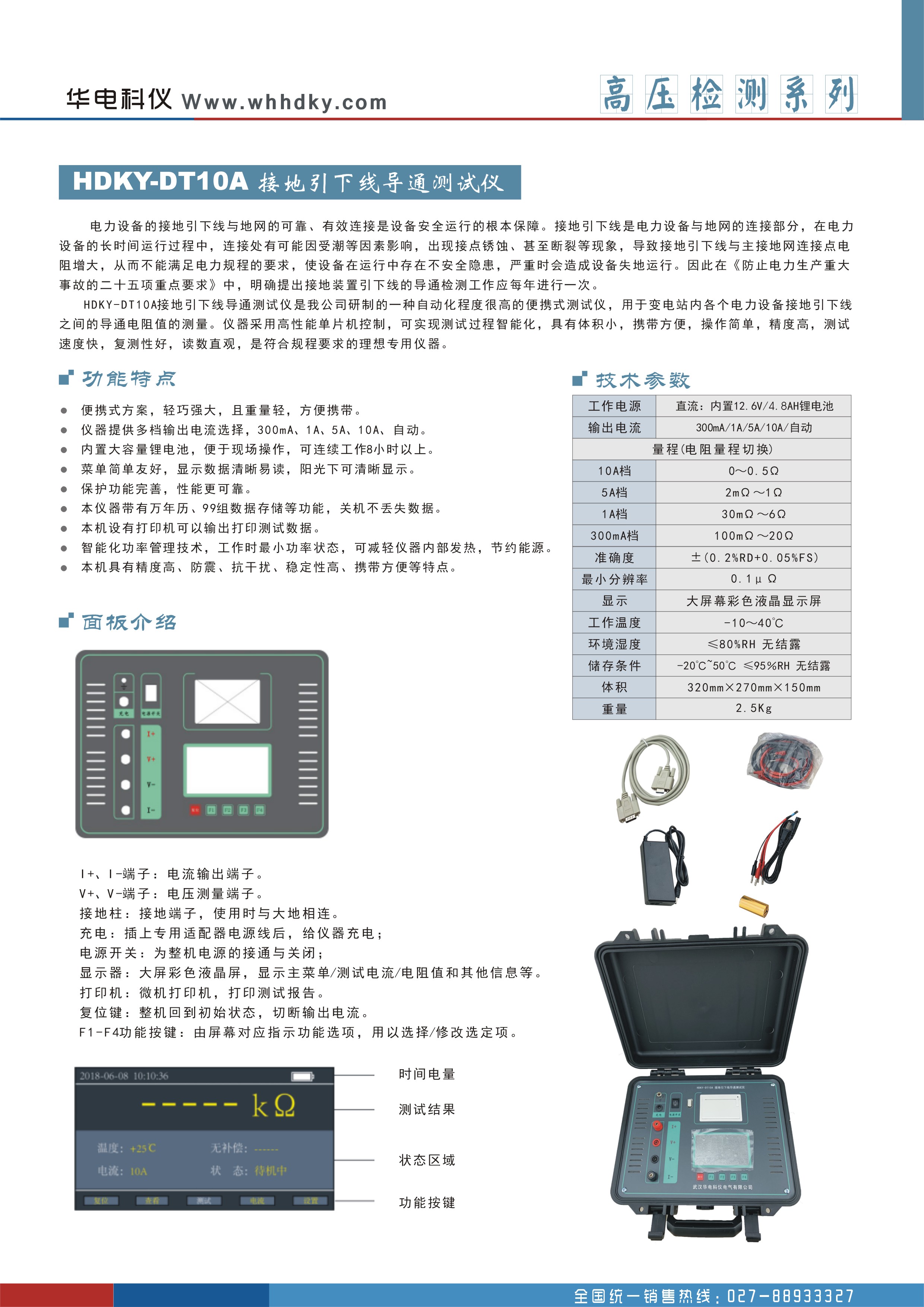 HDKY-DT10A(帶電池)接地引下線導通測試產(chǎn)品簡介: