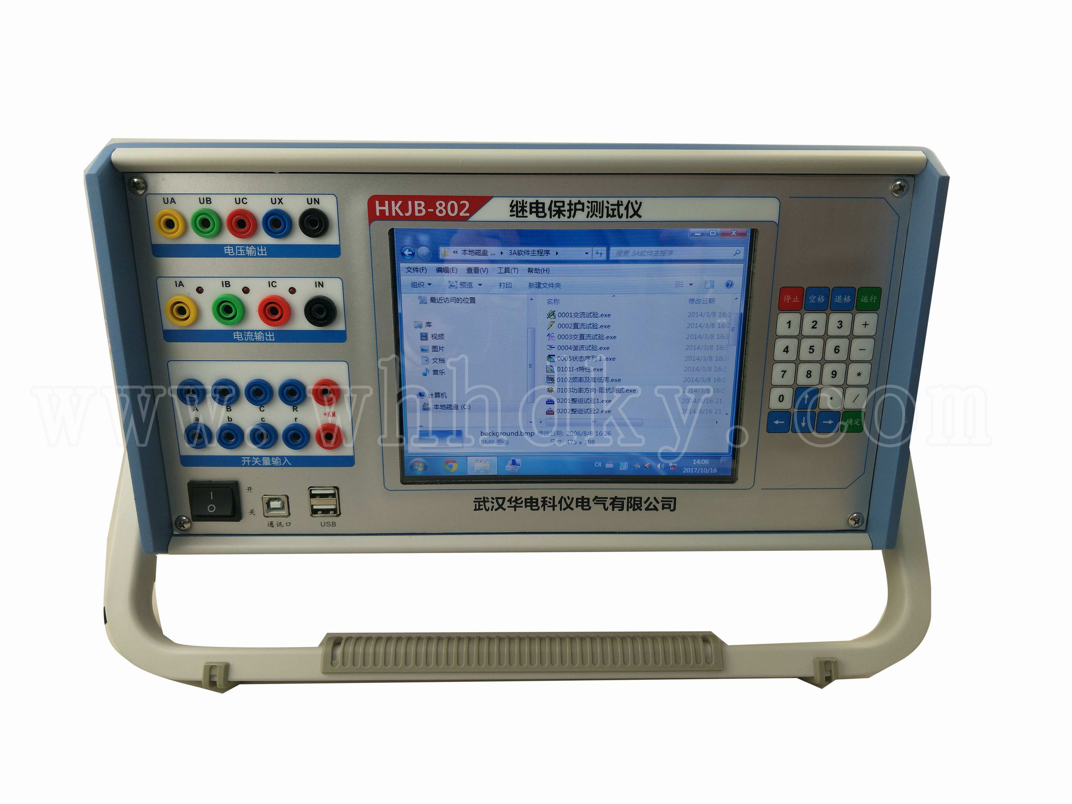HKJB-802三相微機(jī)繼電保護(hù)測(cè)試儀工控機(jī)Windows XP操作系統(tǒng), 8.4寸大屏幕高分辨力彩色TFT液晶顯示屏,雙USB接口,2 — 20次諧波,頻率0~ 1000Hz,10路開(kāi)入,8對(duì)開(kāi)出量,微機(jī)繼電保護(hù)裝置全套試驗(yàn),精度≤0.2%,重量:18KG