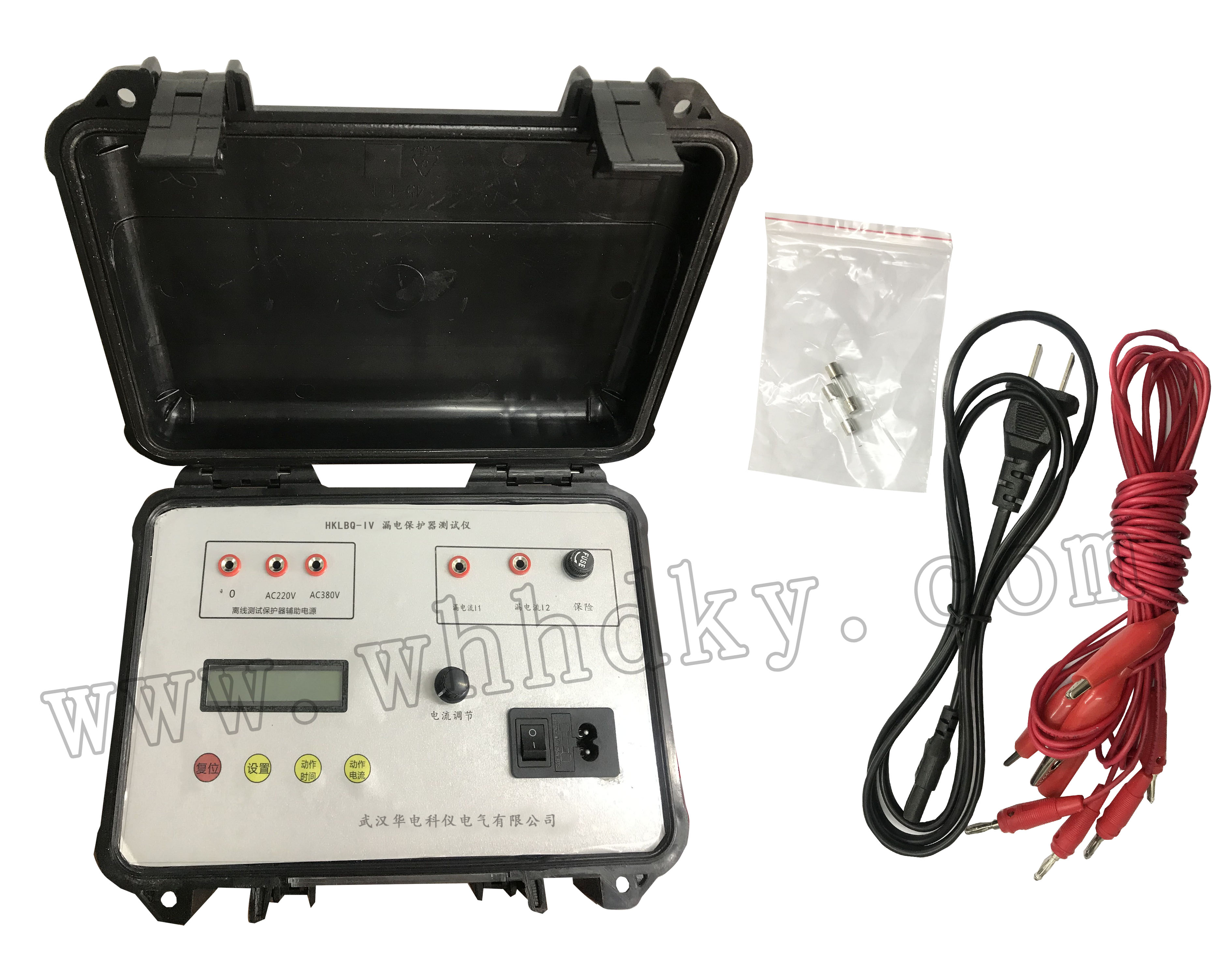 設(shè)備名稱:漏電保護(hù)器測試儀 型 號:HKLBQ-C 數(shù) 量:1臺套 生產(chǎn)廠家:武漢華電科儀電氣有限公司