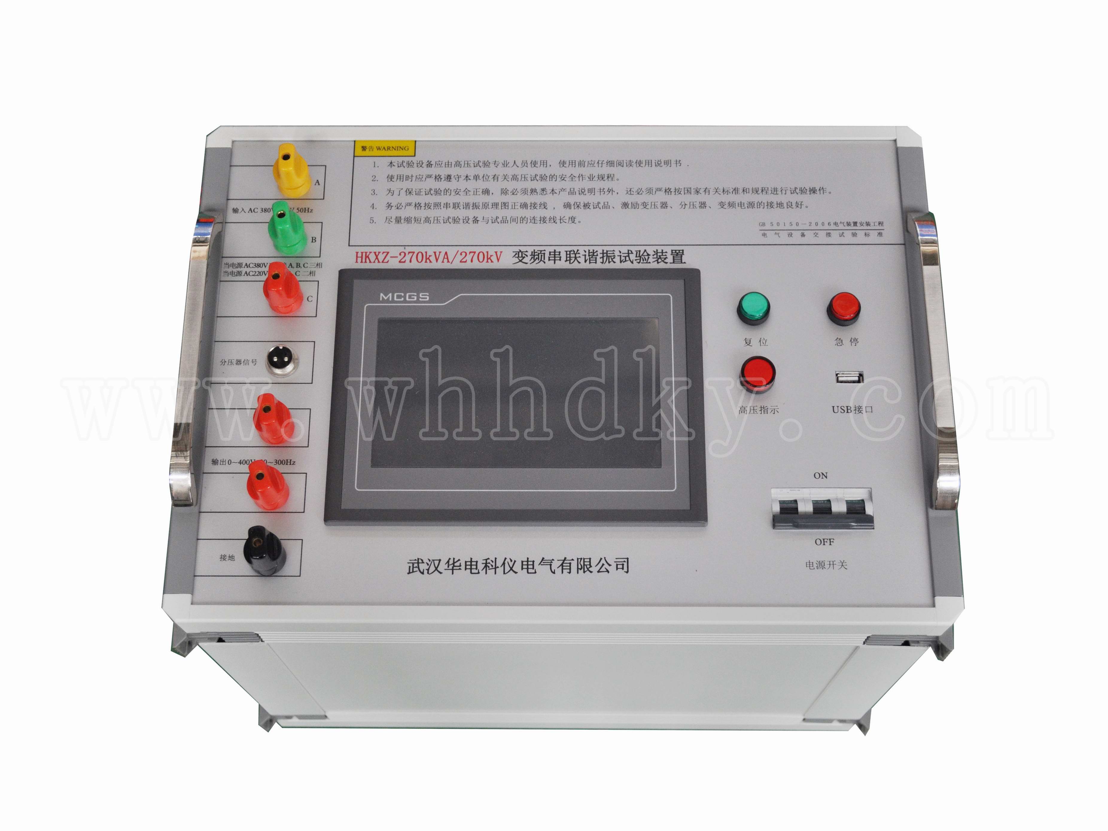 11、保護功能:對被試品具有過流、過壓及試品閃絡保護(詳見變頻電源部分);