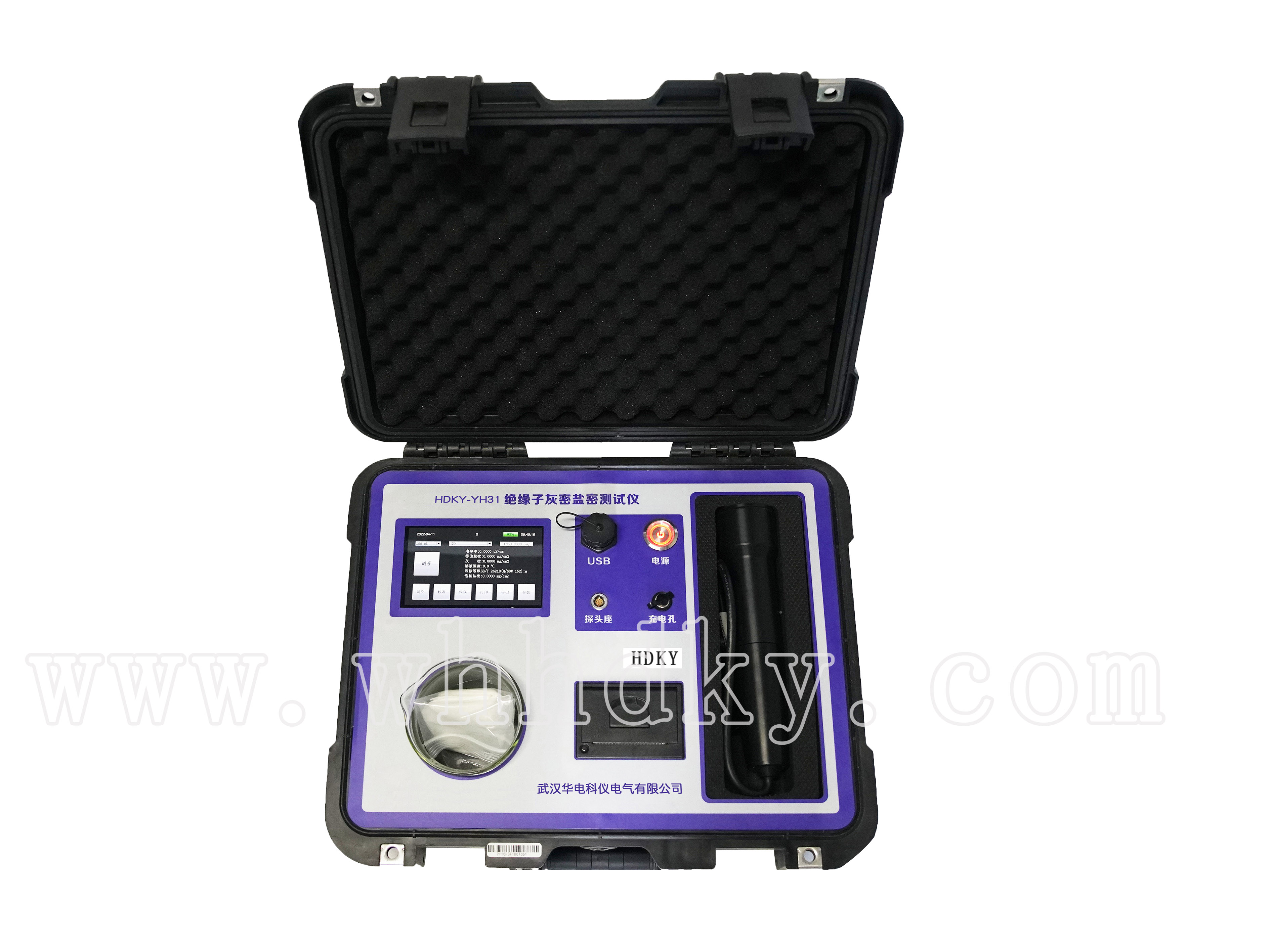 設(shè)備名稱:絕緣子憎水性帶電檢測裝置 型 號:HDKY-HC1 數(shù) 量:1臺套 生產(chǎn)廠家:武漢華電科儀電氣有限公司